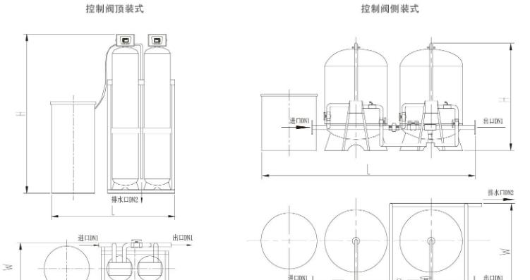 全自动软化水设备进水管上应装 Y 型过滤器和水压表,防止进水管路内的污物堵塞控制器